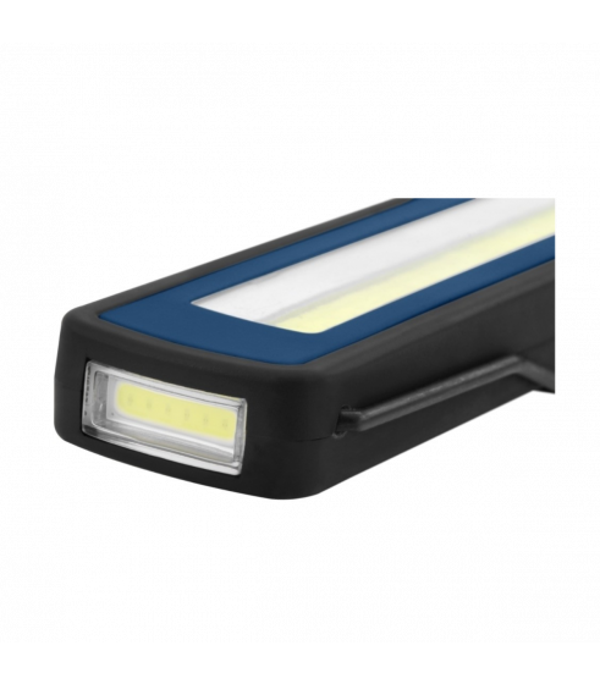 Deze werklamp word inclusief baterijen geleverd. De spotlight aan de bovenzijde en de grote hoofdlamp produceren een sterke lichtstraal. De achter/bovenzijde van de lamp is voorzien van een stevige ophanghaak. De achterzijde van de lamp is voorzien van magneten. Hierdoor kan de lamp op alle metalen oppervlakten kan worden bevestigd.